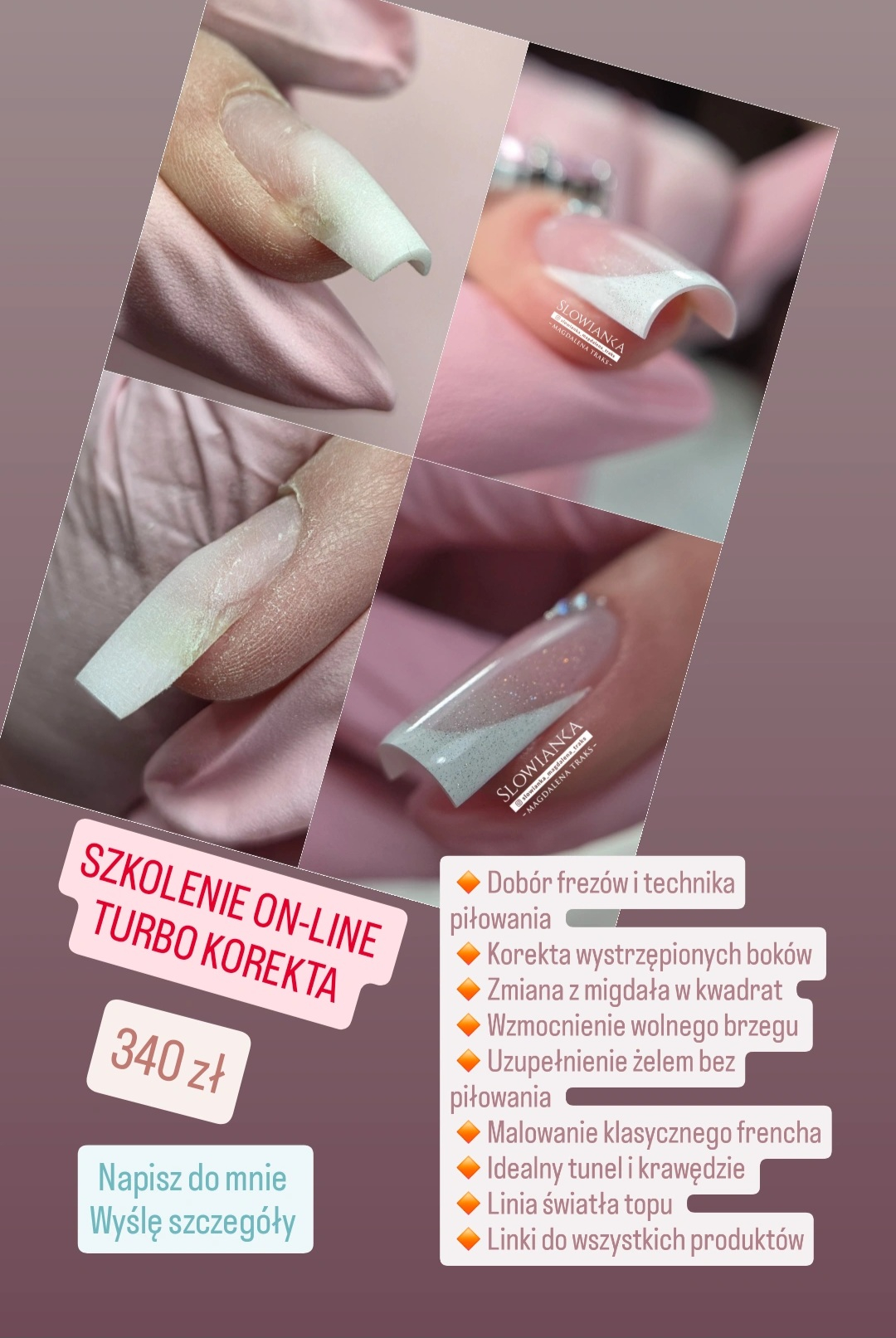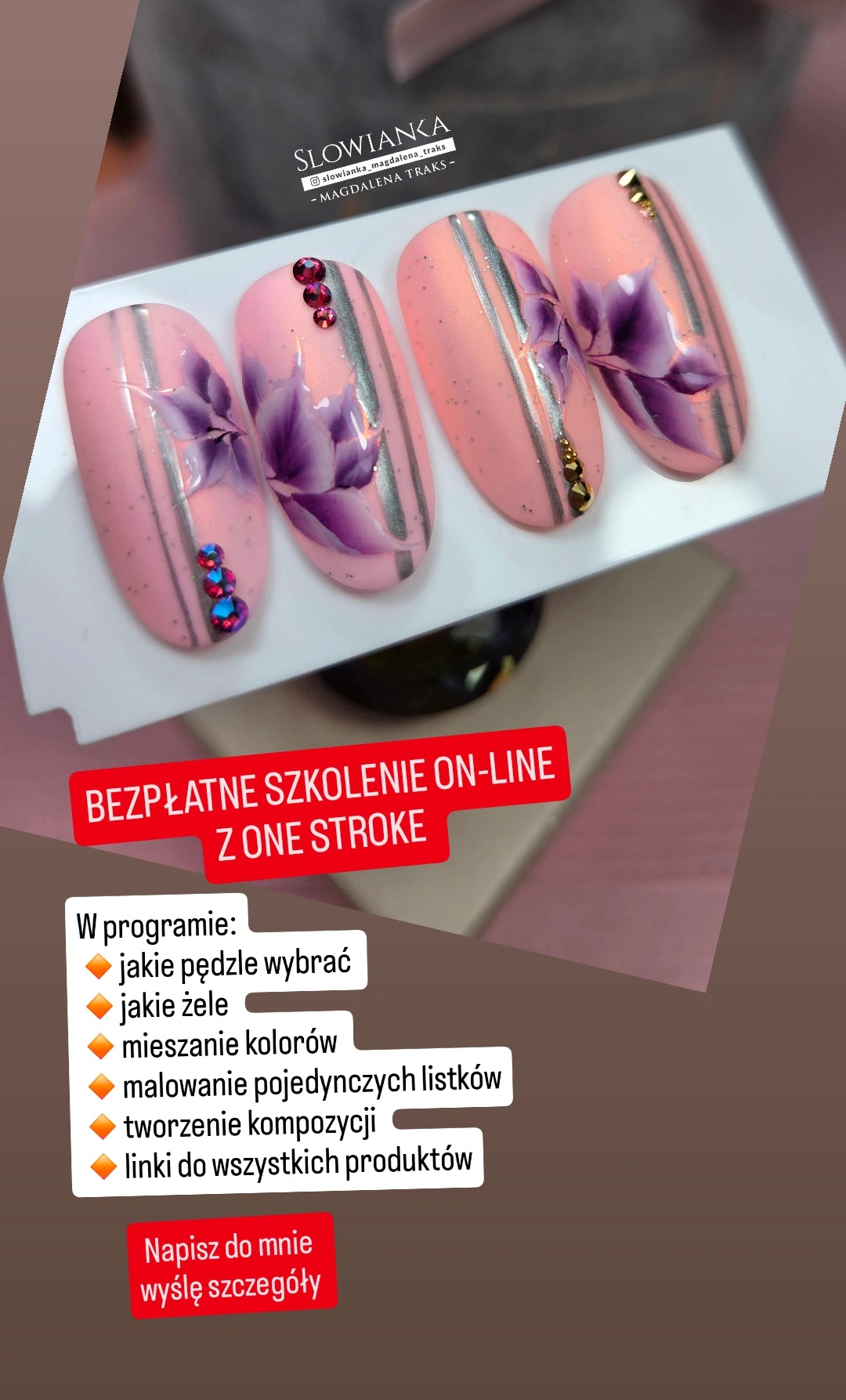 ▪️to bezpłatne szkolenie jest dla Ciebie prezentem ode mnie. Nauczę Cię jak mieszać kolory, jakich używać żeli i pędzli.