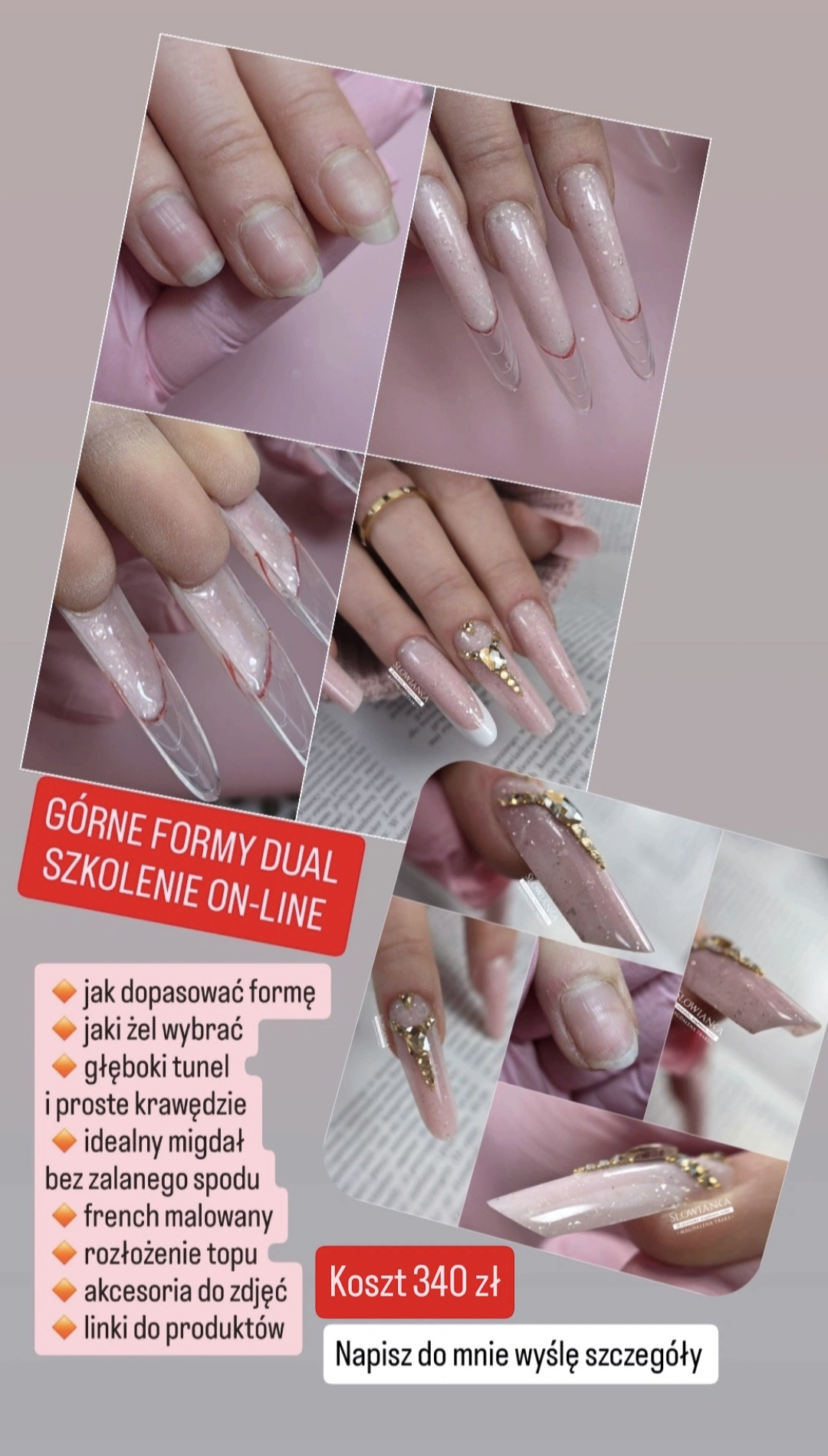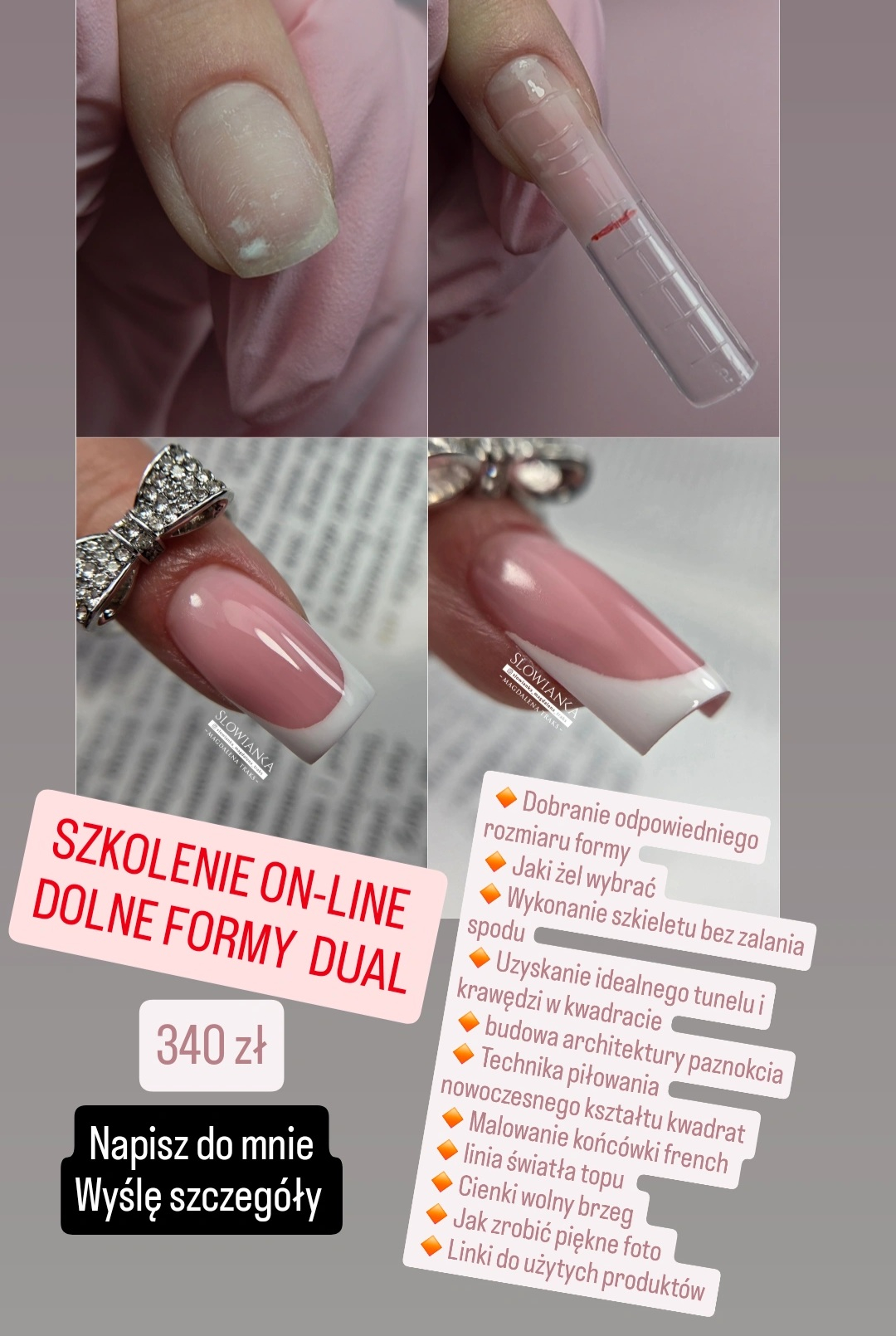 ▪️to bardzo obszerne szkolenie. Nauczę Cię jak podciąć i podłożyć szablon pod płytki, które sprawiają problem, czyli krogulcze i z przerośniętym hyponychium pod spodem. Obgryzione z odstającym opuszkiem. Z płaskim naturalnym frenchem gdy robi się pusta przestrzeń pomiędzy formą a płytką. Wszystko wytłumaczę Ci na grafikach i rysunkach.