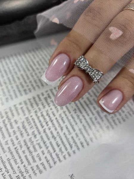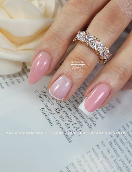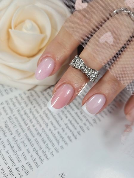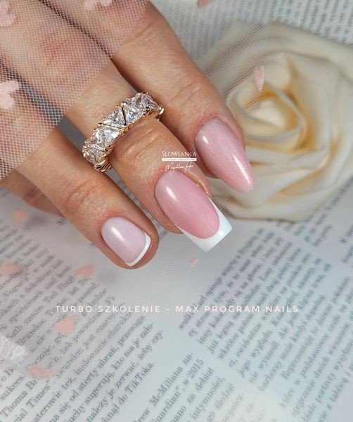 - Budowanie i wzmocnienie naturalnej płytki bazami + klasyczny biały french
