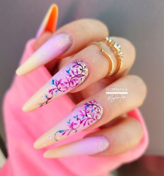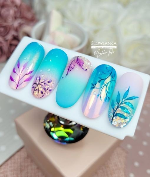 - ombre żelami,ombre brokatowe