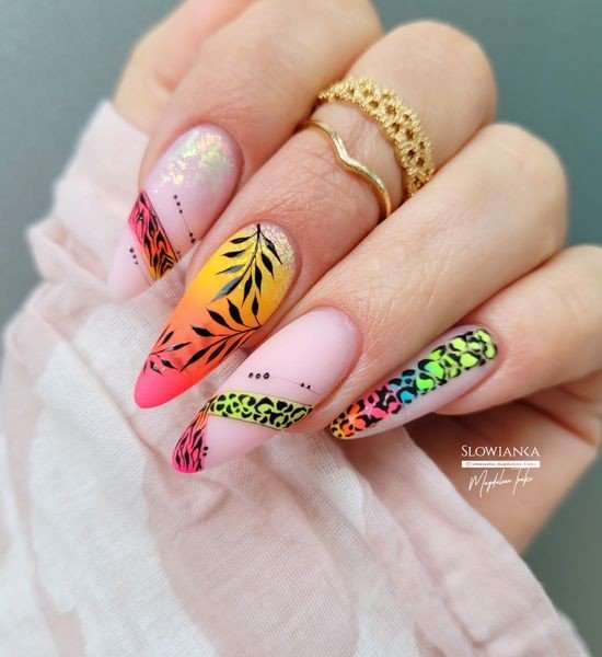 - ombre gąbką i pędzlem pionowe, poziome, skośne